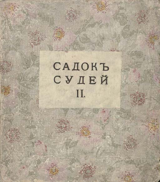 САДОК СУДЕЙ II [СПб.], Журавль, 1913. С 15-ю иллюстрациями Д. Бурлюка, В. Бурлюка, Н. Гончаровой (2 илл.), Е. Гуро (5 илл.) и М. Ларионова. [Тираж 800 экз.]. £ 2.000-3.000 / 3.840