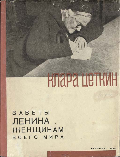 ЦЕТКИН КЛАРА Заветы Ленина женщинам всего мира. Москва, Партиздат, 1934. [, переплет, иллюстрации Варвара Степанова]. [Тираж 10.000 экз.]. Погашенный штамп на титуле. £ 400-600 / 2.040 В каталоге оформителем указана О. Розанова, которая умерла в 1918 г., также указано, что некоторые монтажи в книге работы Александра Родченко.