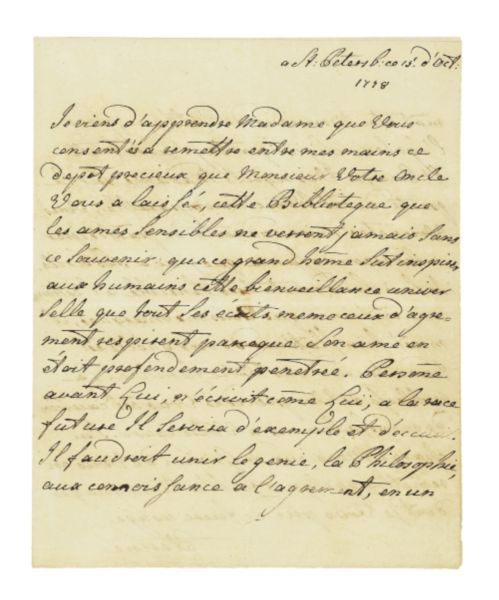 Выпуск рассылки от 19 марта 2007 г. Книги наступившей недели В Маастрихте завершилась ежегодная антикварная ярмарка книг и графики. Подробности...В Лейпциге открывается 13-я Антикварная книжная ярмарка. Подробности... В Эдинбурге пройдет очередная Антикварная книжная ярмарка. Подробности... В Париже продается экземпляр «лидантю фАрам» Ильи Зданевича, а в Кельне первое издание «Взорваль» Алексея Крученых. На аукционе Кристи в Лондоне выставляется на торги прекрасное издание Бойделлов, посвященное собранию живописи Екатерины II. В Париже сразу на нескольких аукционах можно будет приобрести первое французское издание «Преступления и наказания» Ф. М. Достоевского, «Лолиты» В. Набокова и первый французский сборник произведений А. С. Пушкина. В Париже на аукционе Сотби на продажу выставляется письмо Екатерины II, а также полная рукопись романа графини де Сегюр «Генерал Дуракин», а в Кельне в рамках двухдневного книжного аукциона будут проданы письма Александра II и Екатерины Долгорукой, а также письмо-рекомендация Николая I. Русские книги Эстимейт: € 5.000-6.000 *** Кёльн, 23 марта, Венатор & Ханштайн 1. СТАСОВ В. В. История книги «Византийская эмаль» А. Звенигородского. CПб., 1898. Экз. № 56 из тиража в 150 экземпляров. В футляре.Эстимейт: € 4.000 *** Литографированный титул 2. КРУЧЕНЫХ А. Взорваль. СПб., [Еуы], 1913. Первое издание. Рисунки Н. Кульбина, Н. Гончаровой, О. Розановой, К. Малевича, Н. Альтмана. Литографированное издание. Тираж 350 экз. Книги о России на международных книжных аукционах Эстимейт: € 1.600-2.200 ** Лондон, 21 марта, Кристи 1. ПРОПЕРТ У. Русский балет в Западной Европе 1909-1920. Лондон. 1921. Дополнительный титул и украшения Натальи Гончаровой. С 4-мя фотографиями и 56-ю иллюстрациями. Экз. № 320 из тиража в 500 экземпляров. / PROPERT W. A. The Russian Ballet in Western Europe, 1909-1920. London, 1921. Additional coloured pictorial title and decorations by N. Gontcharova, 4 portraits and 56 mounted plates at the end, most coloured. Number 320 of 500 copies.Эстимейт: £ 500-800 *** 2. СОБРАНИЕ гравюр по самым важным картинам в собрании Ее Императорского Величества Императрицы Российской империи. Из коллекции графа Орфорда в Хоугтоне, Норфолк. Лондон, Джон и Джосиа Бойделл, 1788. В 2-х тт. С портретом Екатерины II и Роберта Уолпола [графа Орфорда]. Список гравюр на английском и французском языках. Со 128-ю гравюрами по картинам на 107-ми листах и 28-ю планами на 19-ти листах. Экземпляр может быть неполным. / A SET OF Prints Engraved after the most capital Paintings In the Collection of Her Imperial Majesty, The Empress of Russia, Lately in the Possession of The Earl of Orford at Houghton in Norfolk; With Plans, Elevations, Sections, Chimney Pieces & Ceilings. London, John & Josiah Boydell, 1788. 2 volumes. Frontispiece portraits of Catherine II, Empress of Russia in vol. I and Robert Walpole in vol. II, engraved titles with allegorical illustrations, dedication, list of prints in English and French parallel text, 28 engraved plans and elevations of Houghton on 19 sheets and 128 plates on 107 sheets. Owing to varying plate counts this lot is sold not subject to return. Эстимейт: £ 2.000-4.000 *** Кёльн, 23 марта, Венатор & Ханштайн 1. Д'ОТРОШ Ж. Путешествие в Сибирь. Париж, [1768]. Только Атлас. Первое издание. / CHAPPE d'AUTEROCHE J. Voyage en Siberie, fait par ordre du Roi en 1761 ... . Paris, [1768]. Daraus der Atlas.Эстимейт: € 1.200 *** Одна из карт Полный комплект см. Книжные аукционы 16 октября 2006 г. 2. ГУМБОЛЬДТ А. Центральная Азия. Берлин, 1844. Три части в 2-х тт. С раскладывающейся гравированной картой и 24-мя иллюстрациями. Первое немецкое издание. / HUMBOLDT A. Central-Asien. Untersuchungen ueber die Gebirgsketten und die vergleichende Klimatologie. Berlin, 1844. 3 Tle in 2 Bdn. Mit 1 gef. lithogr. Karte und 24 Tafeln. Erste deutsche Ausgabe. 3. ШТИСИУС К. Реляции о современном состоянии Московии. Франкфурт, 1706. / STIESS Ch. Relation von dem gegenwaertigen Zustande des Moscowitisch